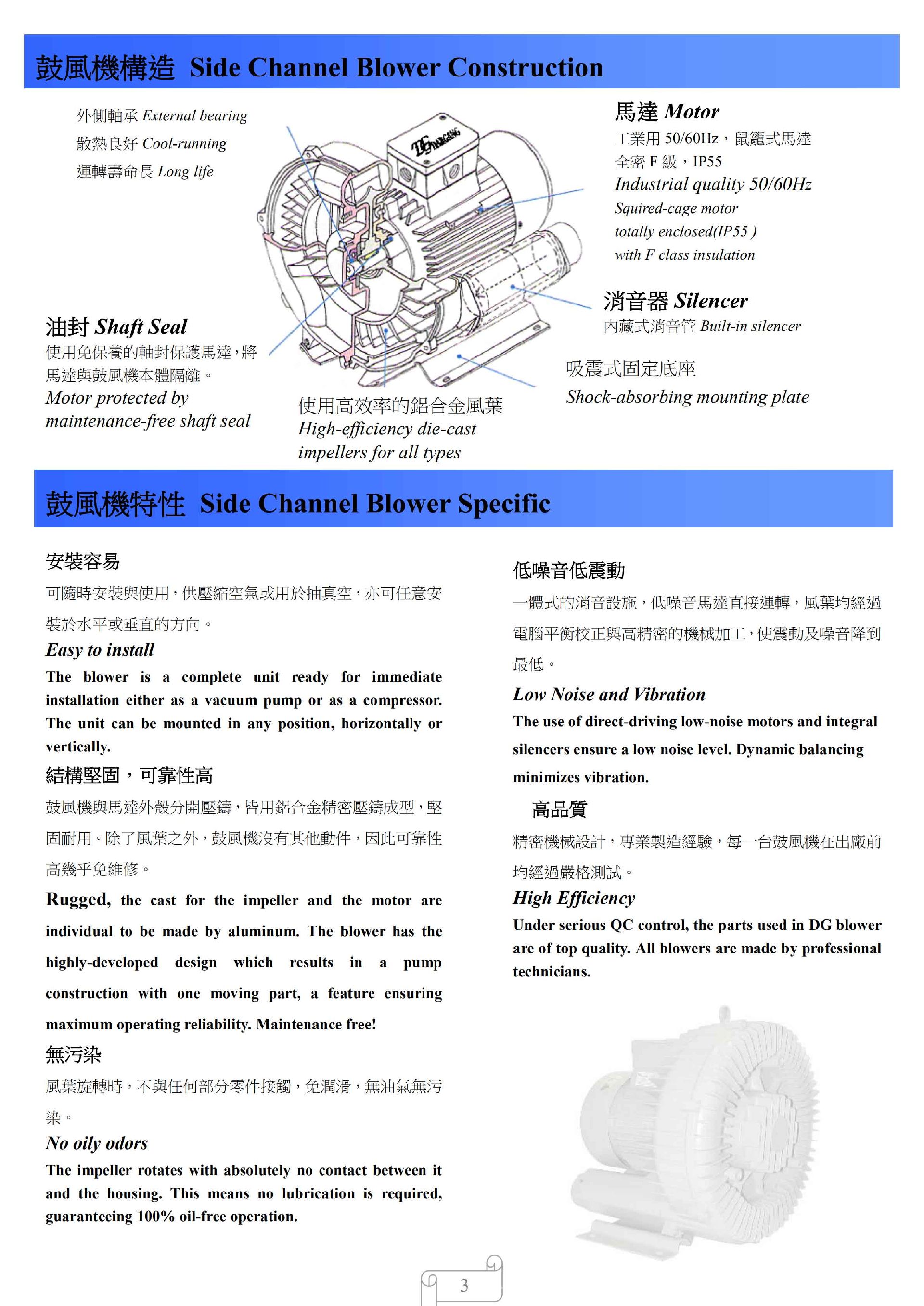 结构坚固,可靠性高:鼓风机与马达外壳分开压铸,皆用铝合金精密压铸成型,坚固耐用。除了风叶之外,鼓风机没有其它动件,因此可靠性高几乎免维修。风叶旋转时,不与任何部分零件接触,免润滑,无油气 。